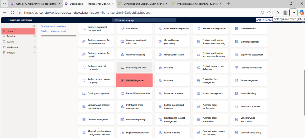 Open Data Management Workspace from home page