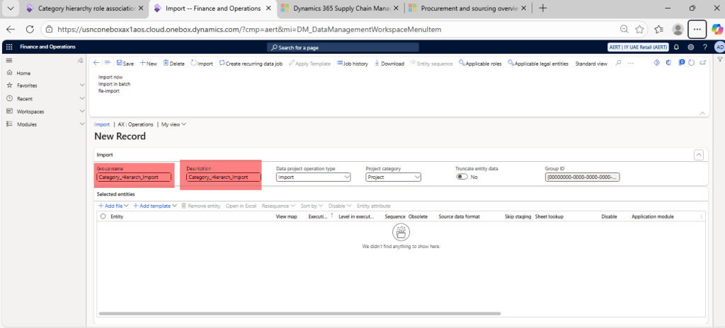 Enter Group name (Category_Hierarch_Import) and Description (Category_Hierarch_Import)