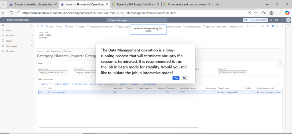 To create category hierarchy in bulk, we can using Dynamics 365 Import / Export Functionality available in Data Management Module